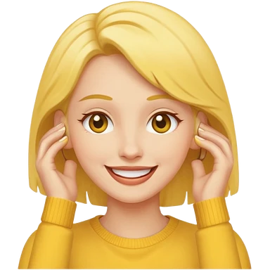 Face a woman turning her head to the side while tucking her hair behind her ear, with a look that says something like Let me mind my business emoji | AI Emoji Generator