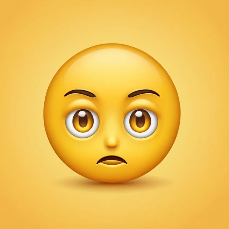 round yellow face, smiling, one eye twitching, apple emoji style emoji