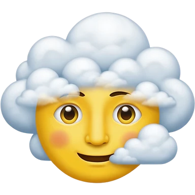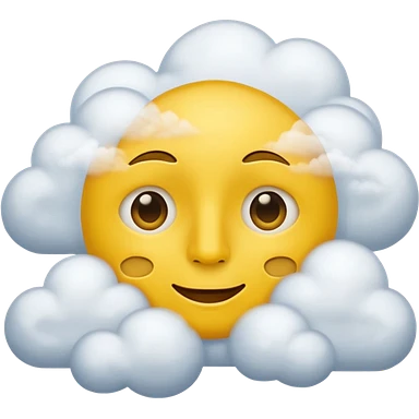 Face in clouds yellow circle and black eyes and remove a mouth and move in a cloud emoji