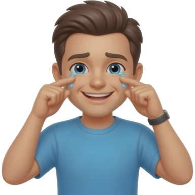 face of a young bald man with blue eyes, smiling emoji