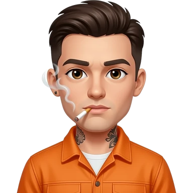 Face tattoos short dark brown hair wearing an orange jumpsuit smoking a cigarette emoji