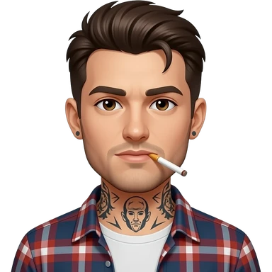 Face tattoos dark brown hair no neck tattoos wearing flannel smoking a cigarette emoji