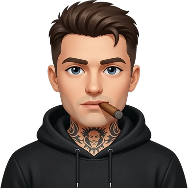 Face tattoos dark brown hair no neck tattoos wearing a black hoodie smoking a cigar emoji
