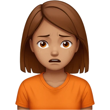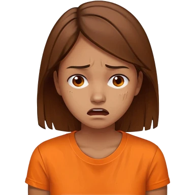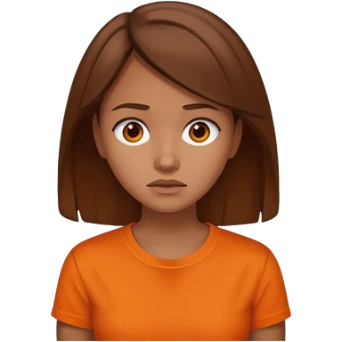 25 year old woman in orange shirt, she looks like she is in pain. She has brown hair emoji