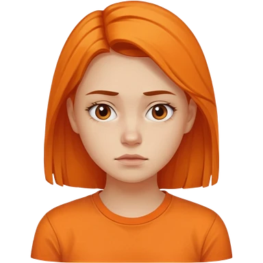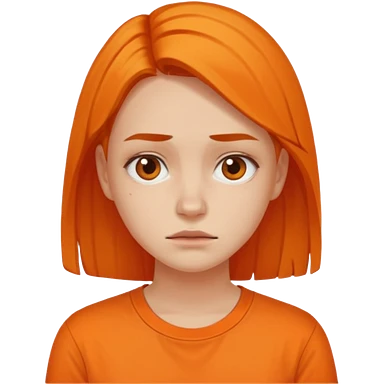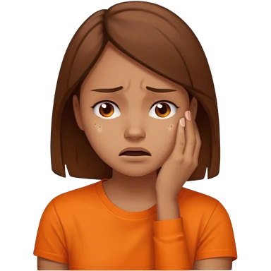 25 year old woman in orange shirt, she looks like she is in pain emoji