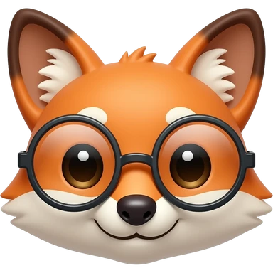 Cunning and cute fox face emoji wearing round-rimmed glasses, 3D emoji style, transparent background emoji