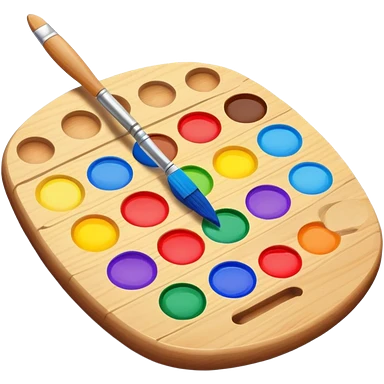round wooden painting palette, paint mixing tray with applied paint colors emoji