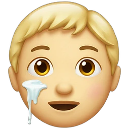 smiling face with milk mustache and splashes, cute and humorous, emoji style, suitable for emoji use emoji
