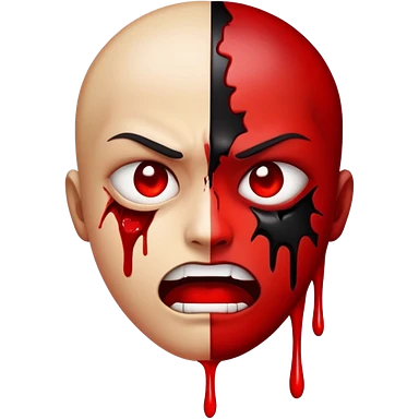 intense psycho face emoji with split of a blood, artistic elements that convey a bold, expressive look, using shades of red and black. emoji