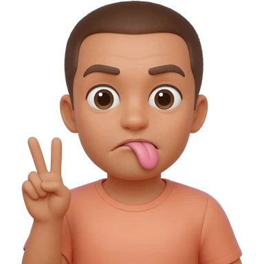 Face stincking it’s tongue out to the side and showing a peace sign with his hand emoji | AI Emoji Generator