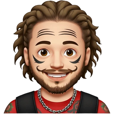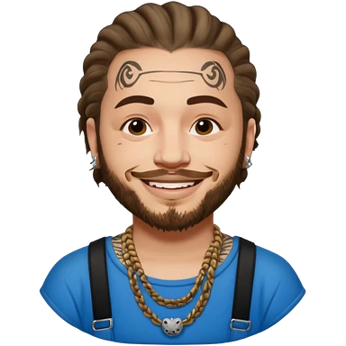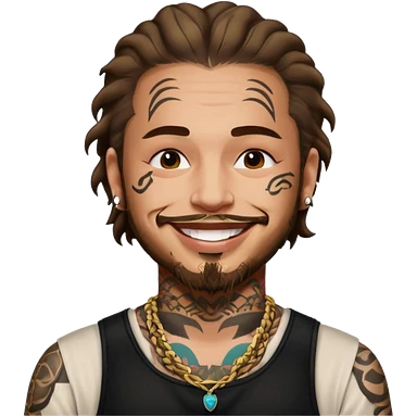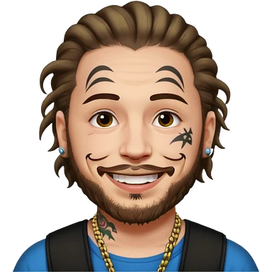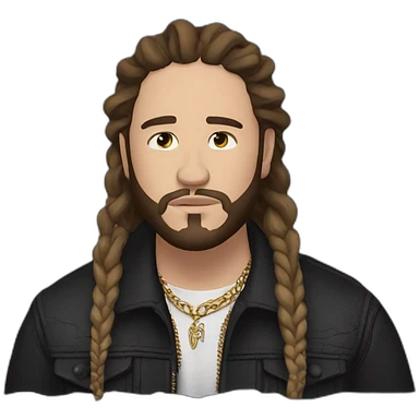post malone with gold chain necklace, wearing hat, dreadlock hair emoji