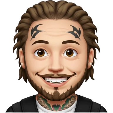 Post Malone (full body), his hands create he cow skull sybol, hand and face has tatoo emoji