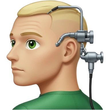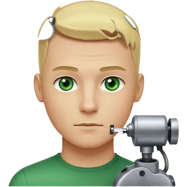 Male, no glasses, blonde hair, right side of hair shaved with a machine, face turned towards the camera emoji