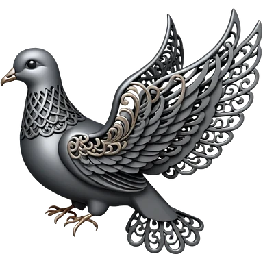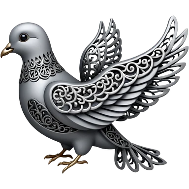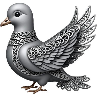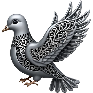 Black and silver filigree dove, 3D, extremely detailed design should face to the right side turned 180 degrees emoji