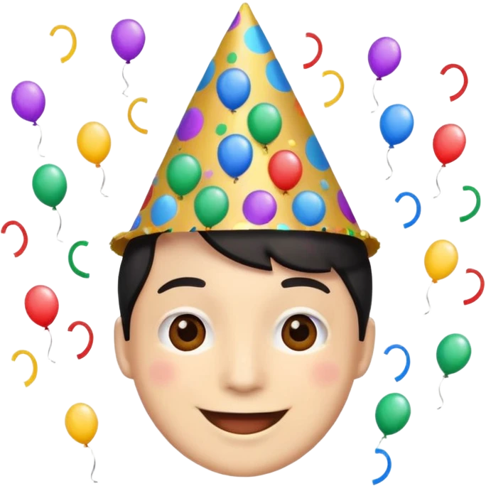 birthday face emoji, joyful expression, party hat, confetti, cheerful emoji