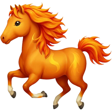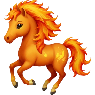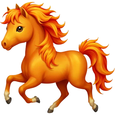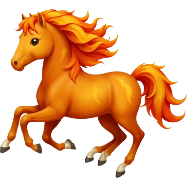 Cute smiley face of a fiery horse with a flowing mane, full-length, galloping emoji