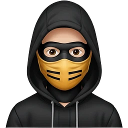 faceless man under black hoodie waring a black amsk that covers his whiole face emoji