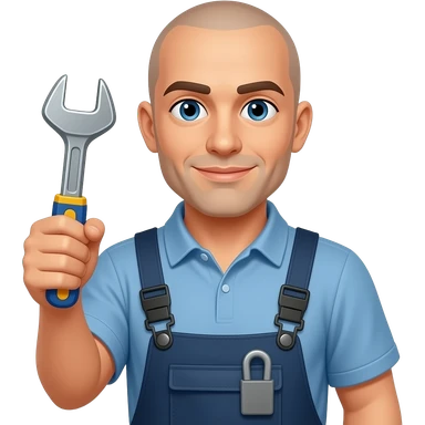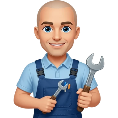bald, facilities staff holding tools emoji