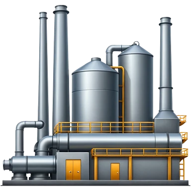 factory with green roof and wind turbine beside it, clean and colorful emoji