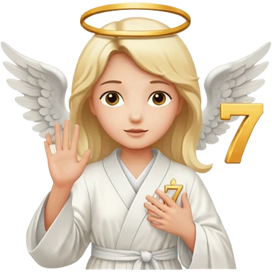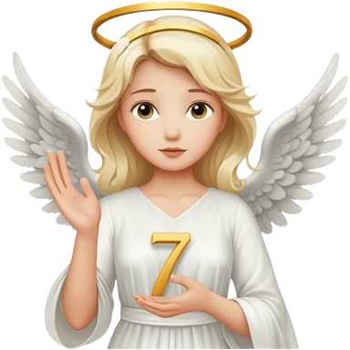 an angel holding number 7 on her hand emoji