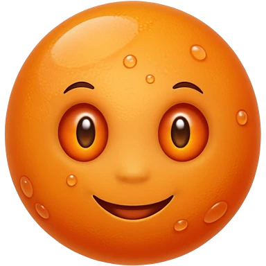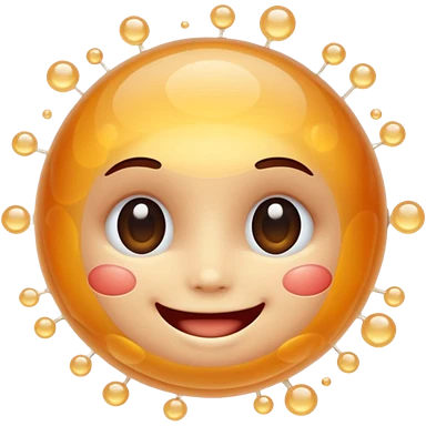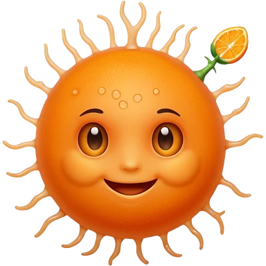 Apple-style emoji. Cute, smiling, glowing orange stem cell with small protrusions. White background. emoji