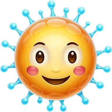 Cute, smiling, glowing stem cell with small protrusions. White background. emoji