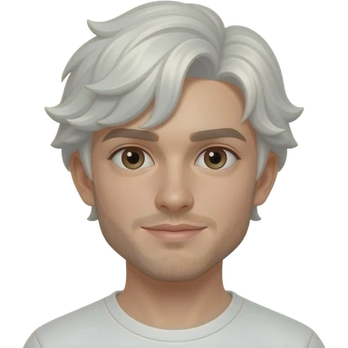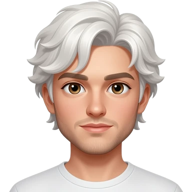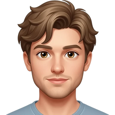 young man with short, slightly wavy brown hair. He has fair skin, dark eyes, and well-defined facial features. emoji