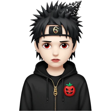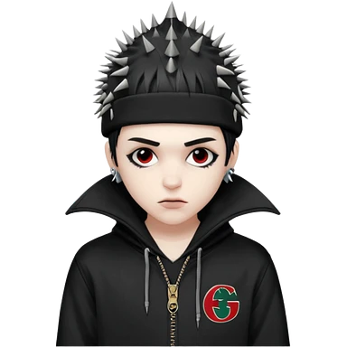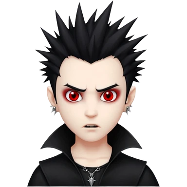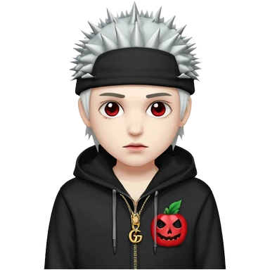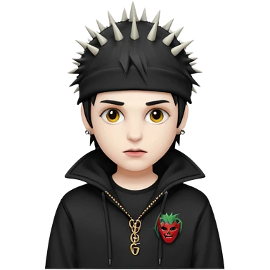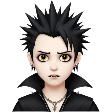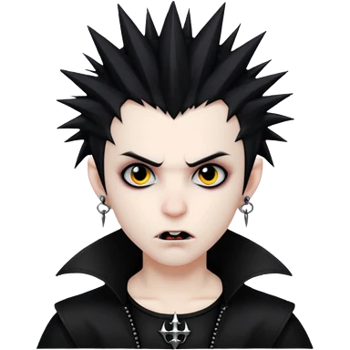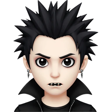 zombie boy with spiky emo black hair and white shirt , tattos, a risk on the eyebrow, earings, a necklace emoji emoji