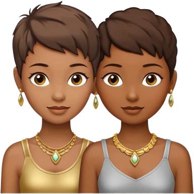 Fair skin and brown colored besties with brown hair pixie cuts wearing jewelry both brown hair emoji | AI Emoji Generator