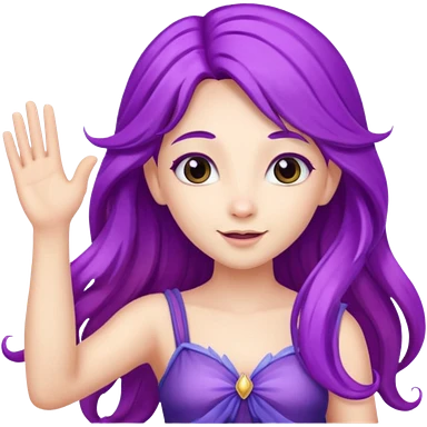 Fairy with long purple hair Waving hi emoji