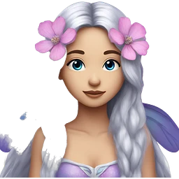 Female fairy Long purple hair Pink dress Rainbow wings Waving emoji