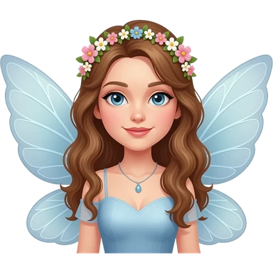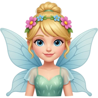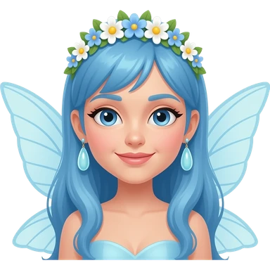 fairy with blue hair, flower tiara and big wings and big earrings emoji