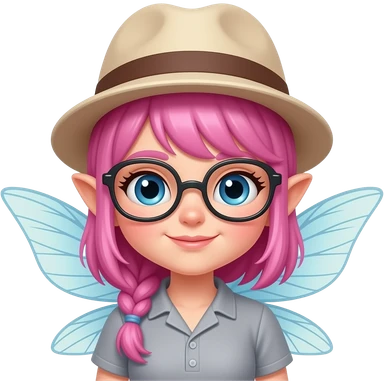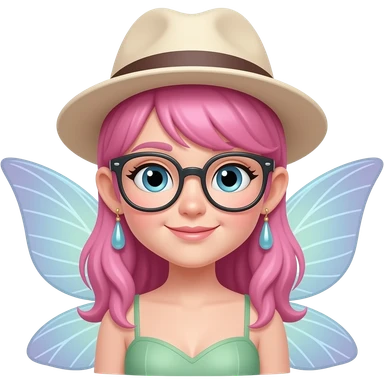 fairy with glassess and hat and wings and pink hair and earrings emoji