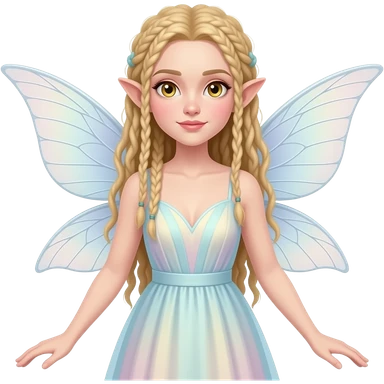 fairy sparkles face with pink hair and braids and fairy wings showing emoji