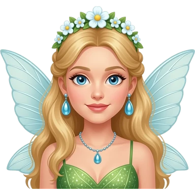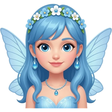 fairy with blue hair, flower tiara and big wings and big shiny earrings emoji