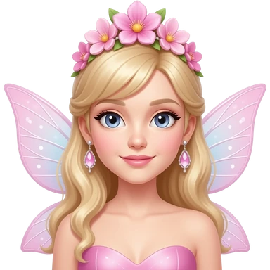 fairy with pink flower tiara and big wings and big shiny earrings emoji