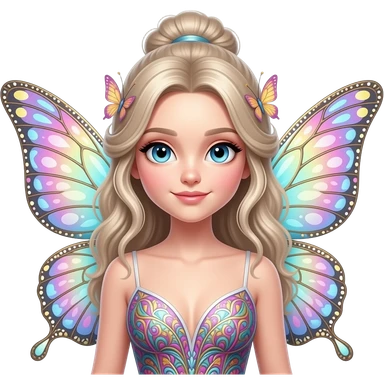 fairy with colorful wings and blond bun emoji | AI Emoji Generator