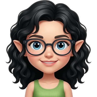 black haired fairy with curly hair and glassess emoji