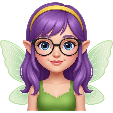 purple haired fairy with glassess and yellow headband emoji