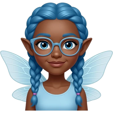 black skinned fairy with blue braided hair and glassess emoji