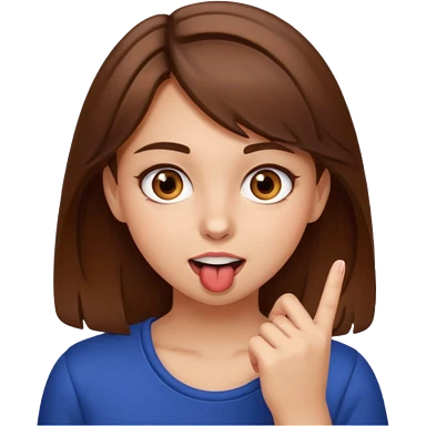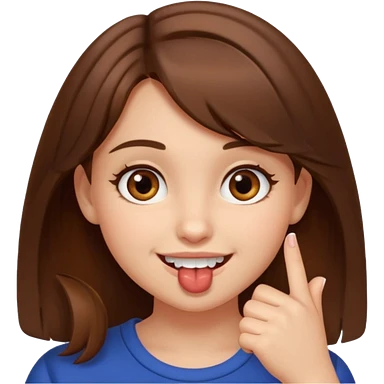 Fais moi une fille brune avec les yeux marrons, qui ce mort un doigt avec un regard coquin. emoji | AI Emoji Generator