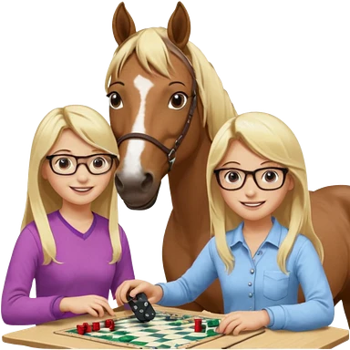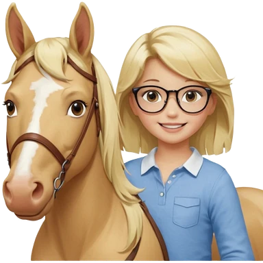 je voudrai un emoji d'une fille aux cheveux longs et blonds avec des lunettes qui fait plein de choses droles (1 avec un cheval, 1 derrière un écran ou une console, une entrain de découper, une entrain de faire un jeu de société, une qui cuisine, emoji