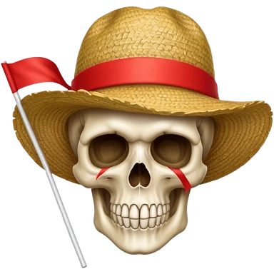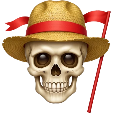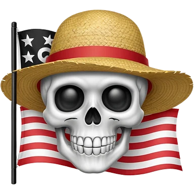 Fait moi un drapeau de tête de mort avec sur la tête un chapeau de paille emoji | AI Emoji Generator