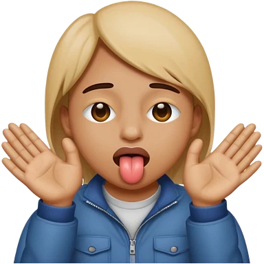 Un emojie qui tire la langue avec des main qui écarte l’aire emoji