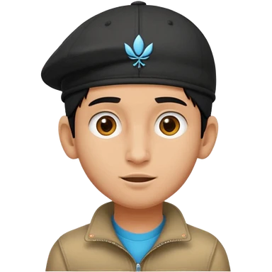 un petit garcon avec une casquette noir et une peau bronzéet un teeshirt blan emoji