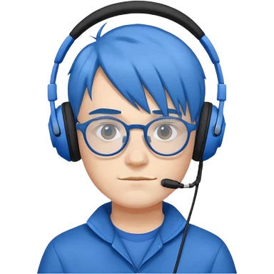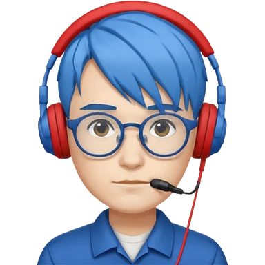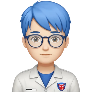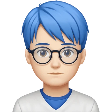 Faker with blue hair, T1 uniform, wearing glasses, white uniform emoji | AI Emoji Generator