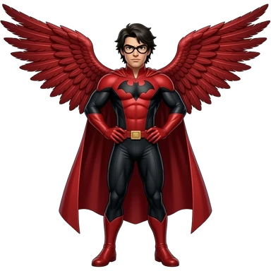 Danny Ramirez as the new Falcon in Captain America: Brave New World, wearing a sleek, high-tech red, white, and silver suit with aerodynamic wings. His expression is determined and heroic, ready for action. The background features a dramatic sky, highlighting his flying abilities emoji