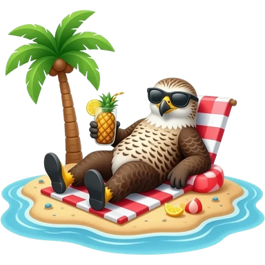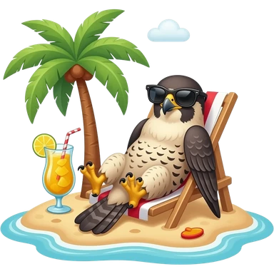 falcon sunbathing on an island on the beach with a pinacolada and sunglasses emoji
