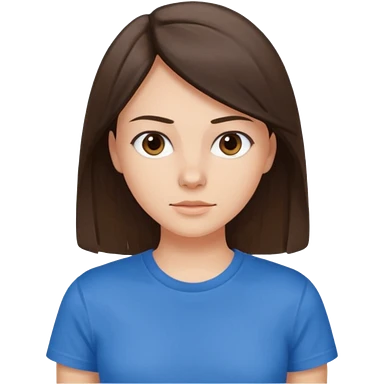 young brunette brawn-eyed woman with straight hair with a blue t-shirt with emoji