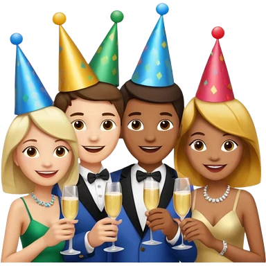 Grupo de 5 personas con 2 hombres y 3 mujeres felices emoji